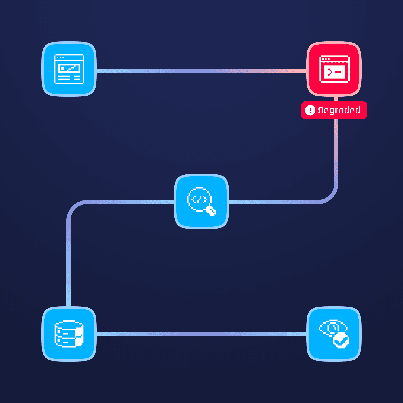 MATE łączy testy end-to-end z weryfikacją baz danych, kolejek i usług backendowych. Działa zarówno z perspektywy użytkownika, jak i wewnątrz infrastruktury. Dzięki temu dostajesz sygnał ostrzegawczy wcześniej niż zgłoszenia od użytkowników.